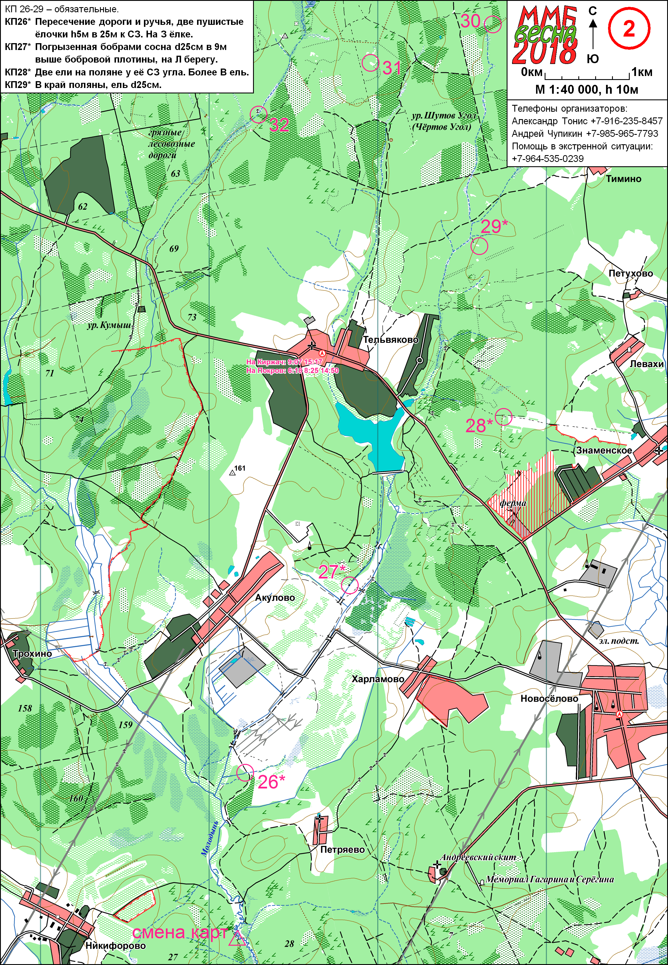 | Дистанция Общая, 62 км (43 КП)/32 км (25 КП) |