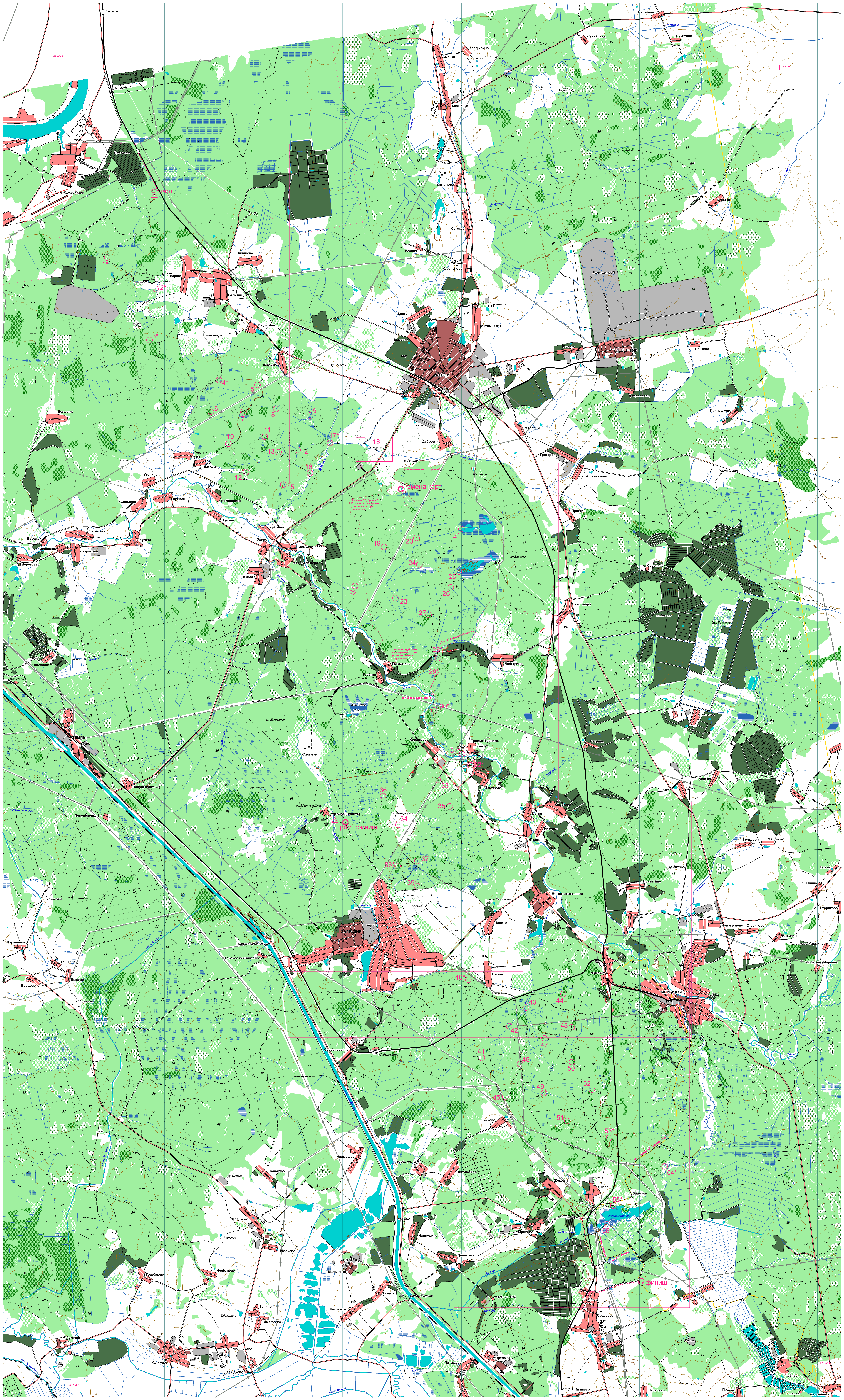 | Дистанция Общая, 55 км (41 КП)/29 км (19 КП) |