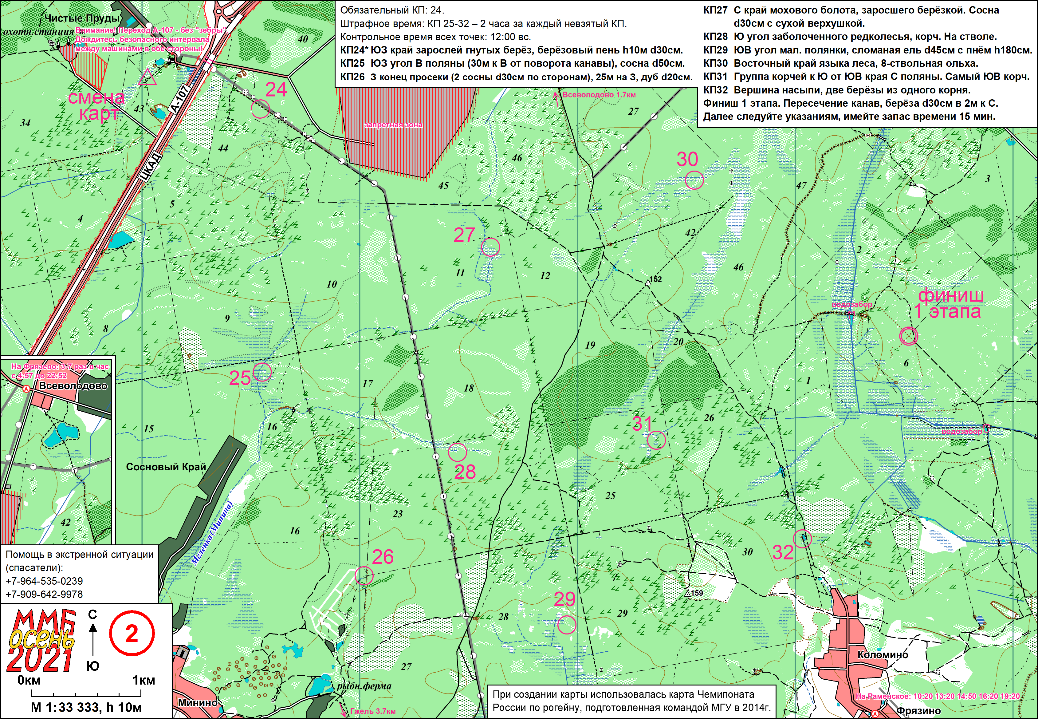 | Дистанция Общая, 52 км (32 КП)/32 км (16 КП) |