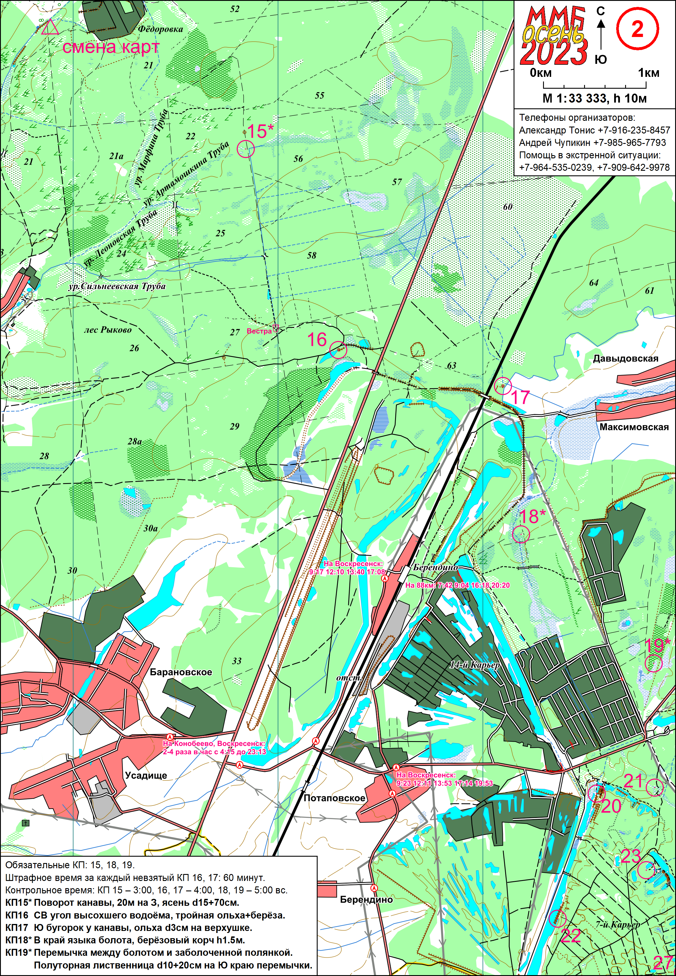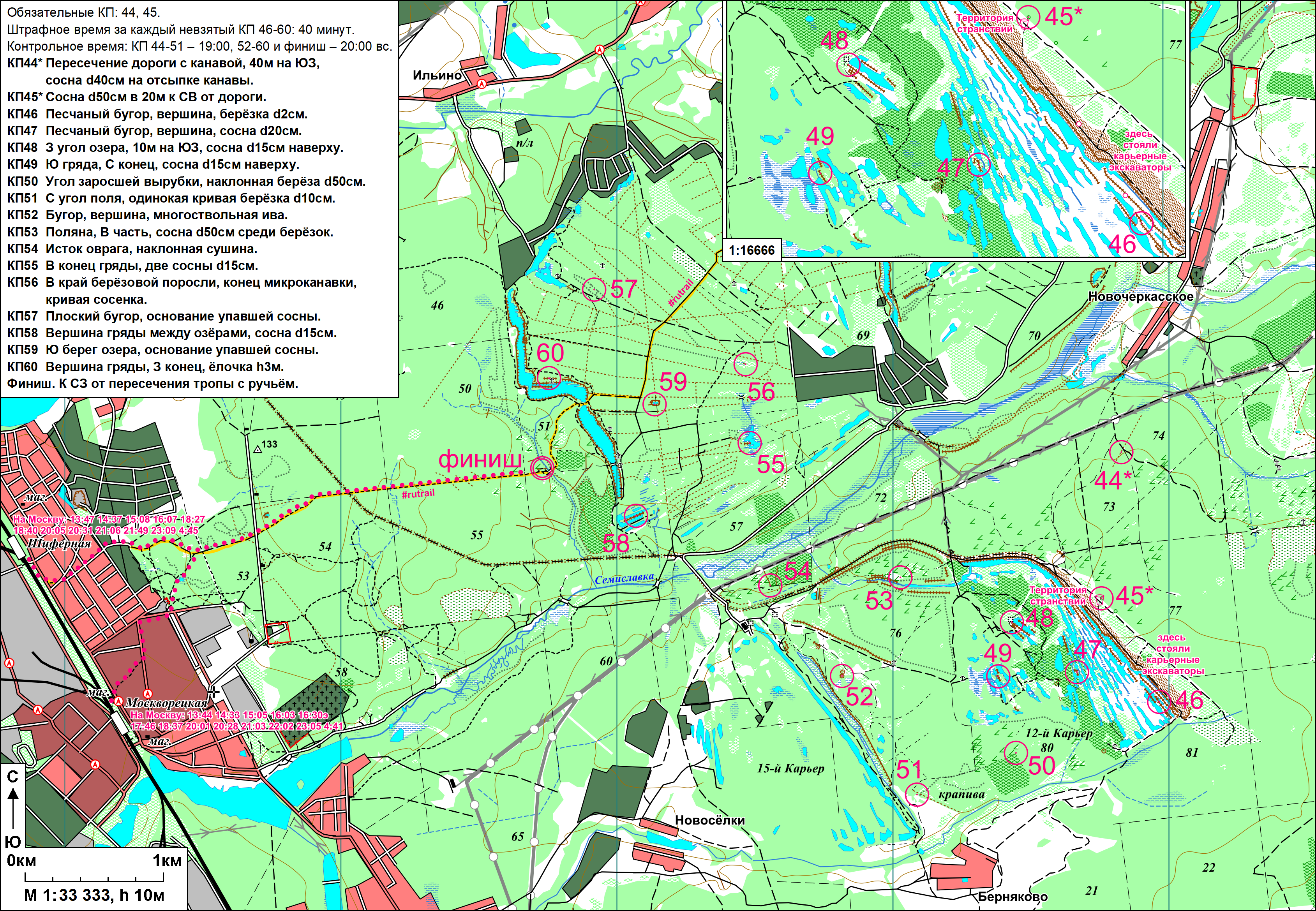 | Дистанция Общая, 54 км (33 КП)/28 км (27 КП) |