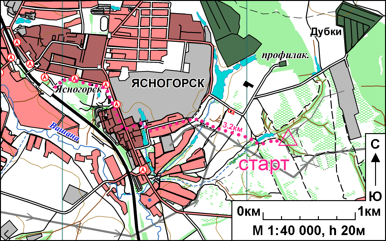 Старт ММБ-2021-весна состоится вечером в пятницу 14 мая в 3.2 км от ст. Ясногорск Курского направления. Выйти из хвостового вагона, перейти ж/д пути на северо-восточную сторону, далее по схеме. Старт находится на северо-восточном берегу оврага. Сворачивать к старту – после характерного бревна-шлагбаума.