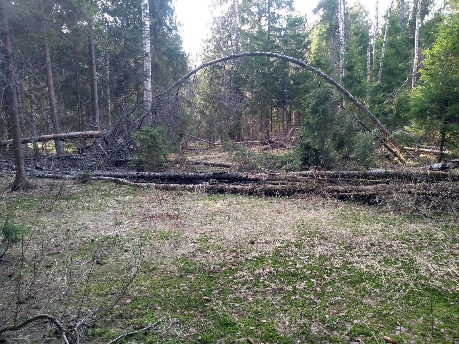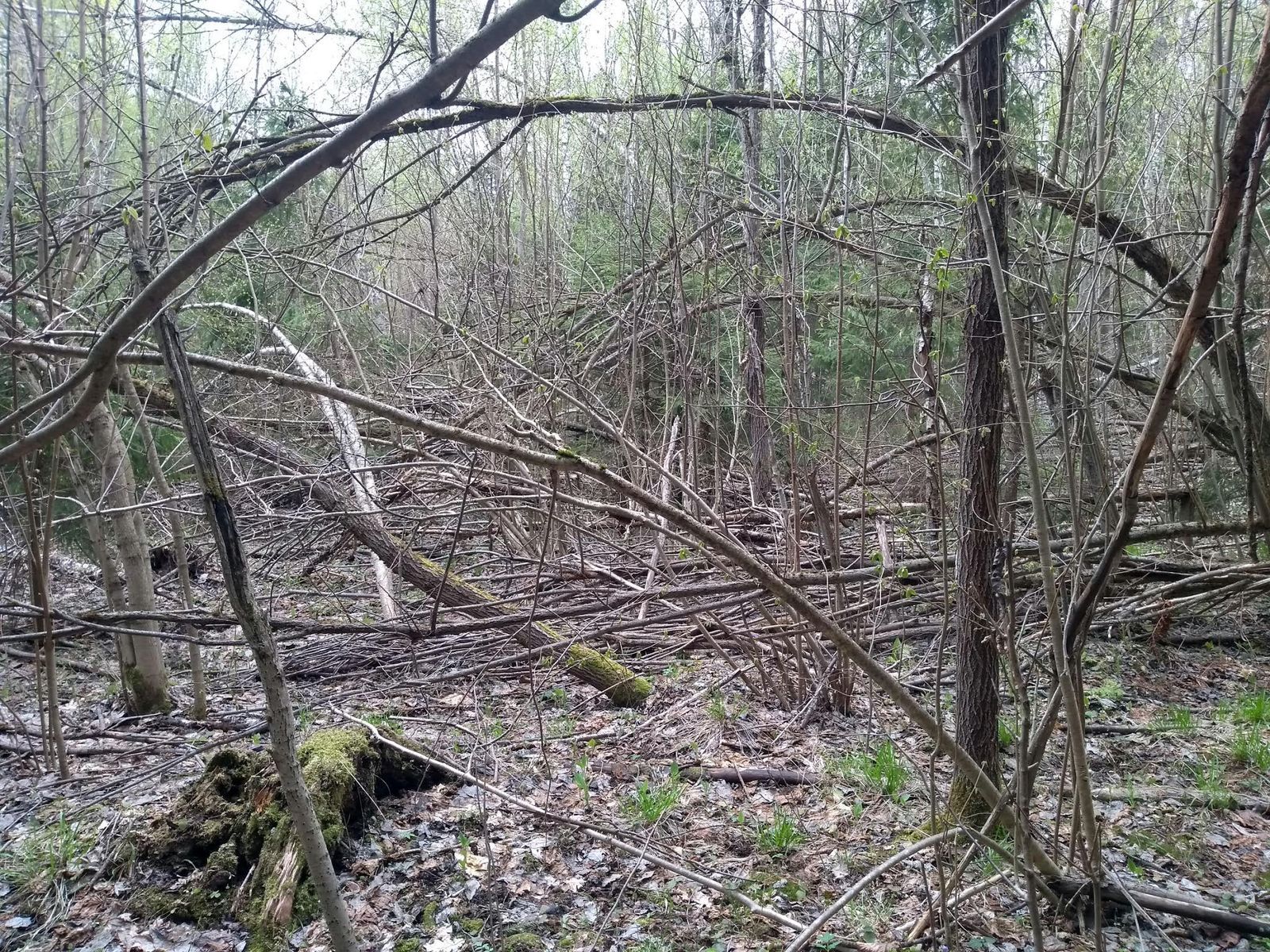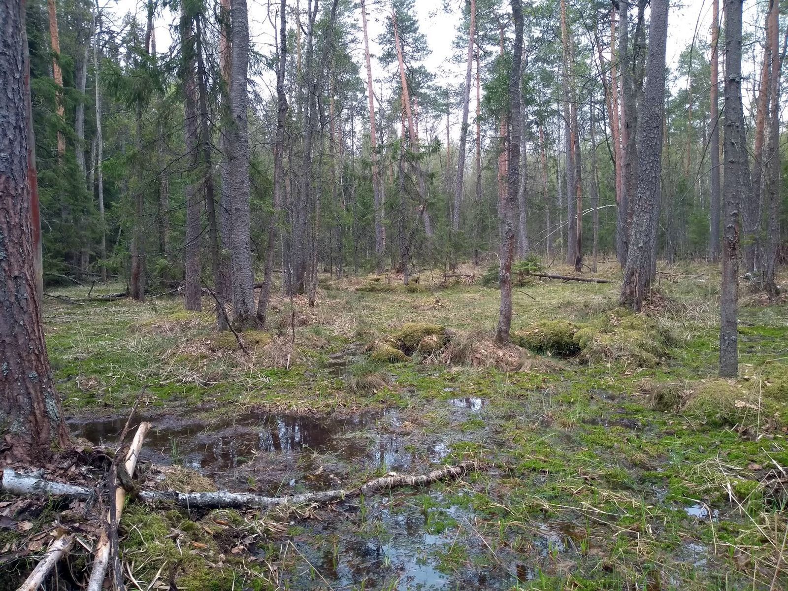 Особенности района. Хвойные (преимущественно еловые) и смешанные леса, травяные луга, вырубки и посадки разного возраста, верховые и низинные болота, ручьи и речки. В еловых лесах есть локальные участки, поражённые короедом-типографом. Там образовались сплошные завалы, которые, как правило, легко обойти. Участки здорового елового леса и старых посадок хорошо проходимы. На некоторых заросших вырубках подрастающий лиственный лес погнут и поломан налипавшим зимой снегом и льдом. Края некоторых полей заросли борщевиком Сосновского, который уже пошёл в рост. Дорожно-тропиночная сеть умеренно густая: просеки в основном чистые, есть квадродороги и тропы, но есть и районы без заметных дорог. Рельеф представлен оврагами и пологими холмами.