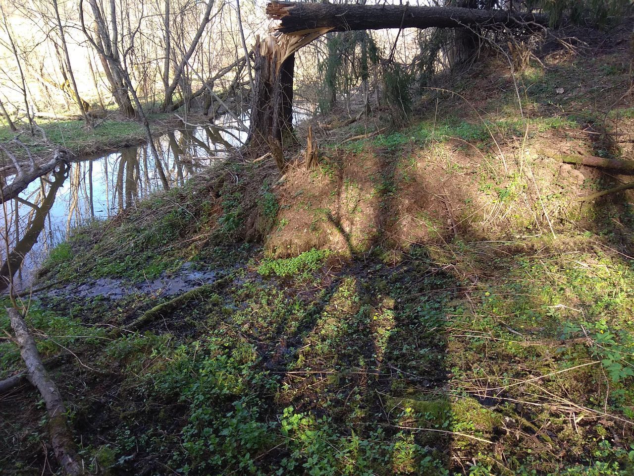 На момент окончания полевых работ уровень воды в районе скорее повышенный. Болота мокрые, в оврагах заметен сток воды. Деятельность бобров не столь заметна, как в других районах Подмосковья. На дистанции возможны броды глубиной до 0.3м. Источников воды на дистанции хватает, но всё ещё может подсохнуть. Воду лучше кипятить.