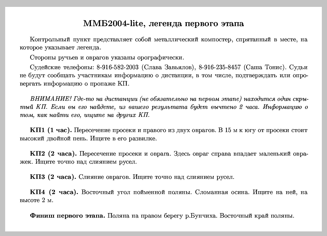 Думал, что так и буду теперь бегать ММБ. Но когда зашла речь о подготовке осеннего ММБ-2003-lite, Слава сразу сообщил мне, где будет дистанция, так что оставалось только присоединиться к команде организаторов. Ну и пошло-поехало. Так что мне только один раз удалось сбегать ММБ. Андрей Чупикин участвовал дважды.