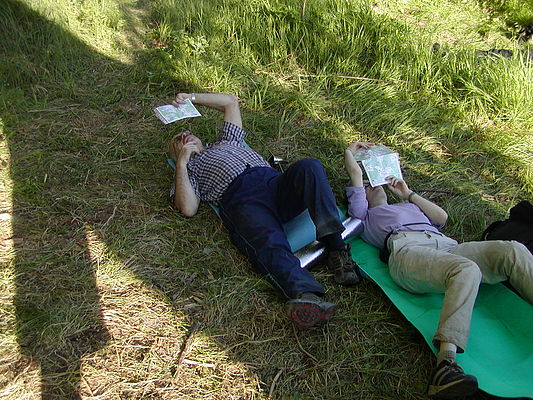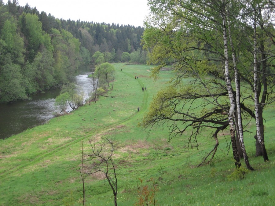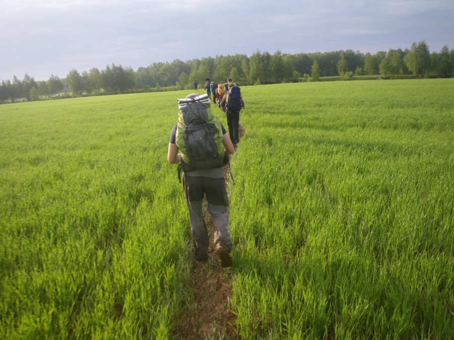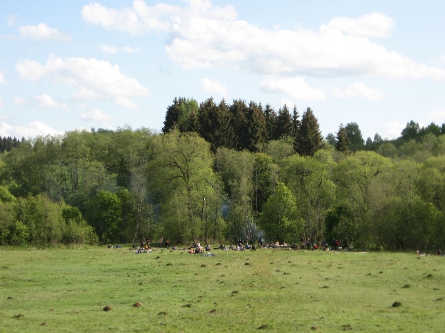 Отак идти самая красота. Идёшь на палочки опираешься, лес ломить не надо, легко и свободно. По лугам. Кстати с палками прикол был. Когда ехали туда было много челов с лыжными палками. Ну думаю хуле они выё.ся, а потом как прошёл часиков семь, понял, что-то в этом есть… И на след день бодренько так с двумя палочками. ДАже пацик с которым ехали в электричке отметил, что мол быстро вы научились. Дык ага, осваиваешься здесь просто бегом!